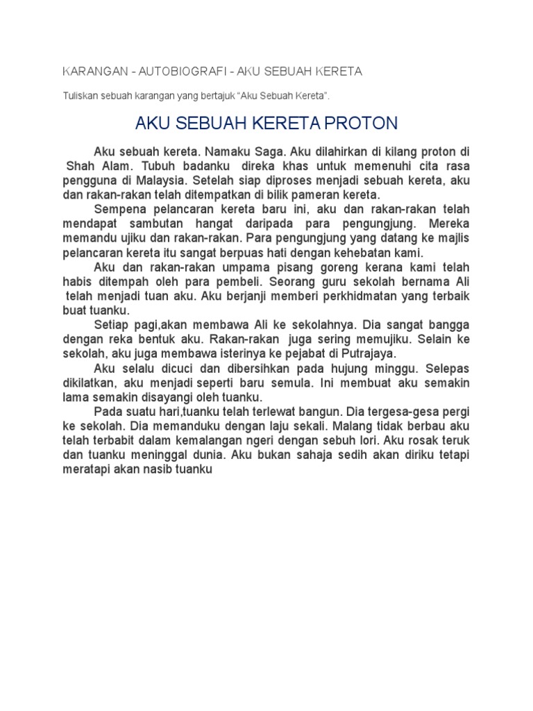 Karangan Autobiografi Aku Sebuah Kereta / Badan aku dibuat daripada besi.. Aku dilahirkan di kilang proton di shah alam. Tempat lahir aku dan bagaimana aku dihasilkan 2. Karangan online exercise for tahun 4. Karangan autobiografi menceritakan dan mengisahkan riwayat hidup penulis. Autobiografi aku sebuah beg sekolah, contoh karangan autobiografi aku sebatang pen, contoh karangan 4 praktis topikal bm 012 bhg b via www.slideshare.net.
