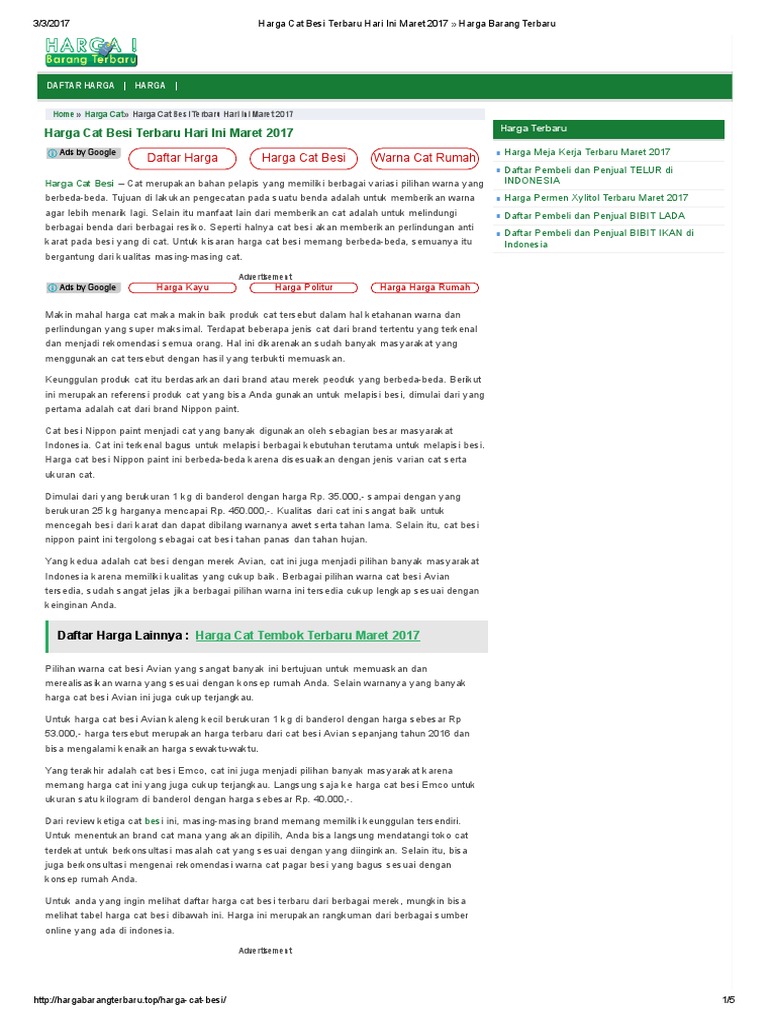 Harga diatas bisa menjadi referensi dan pertimbangan buat anda sebelum membeli cat.
